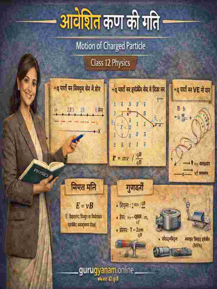 Motion of Charged Particle अध्याय हमें यह सिखाता है कि विद्युत और चुंबकीय क्षेत्र में आवेशित कण कैसे व्यवहार करते हैं। यह अध्याय इलेक्ट्रॉनिक्स, मेडिकल साइंस, अंतरिक्ष विज्ञान और नाभिकीय भौतिकी का आधार है motion of charged particle in electric field।