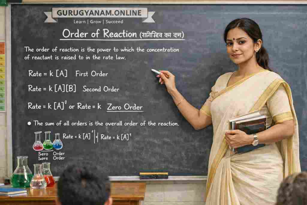 Class 12 Chemistry में Order of Reaction एक अत्यंत महत्वपूर्ण विषय है क्योंकि इससे न केवल दर नियम को समझा जाता है बल्कि संख्यात्मक प्रश्नों का समाधान भी इसी आधार पर किया जाता है। बोर्ड परीक्षा में इससे जुड़े कई प्रकार के सिद्धांतात्मक और गणनात्मक प्रश्न पूछे जाते हैं।