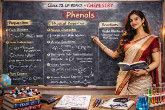 आज हम कक्षा 12 रसायन विज्ञान (UP Board) के अत्यंत महत्वपूर्ण टॉपिक Phenols (फिनॉल) का विस्तृत अध्ययन करेंगे।