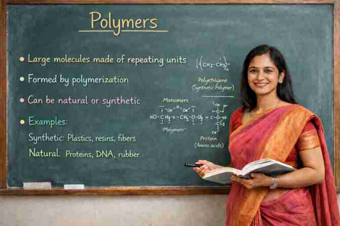 पॉलिमर आधुनिक जीवन का अभिन्न हिस्सा हैं। प्लास्टिक, फाइबर, रबर, चिकित्सा उपकरण – सब पॉलिमर पर आधारित हैं।