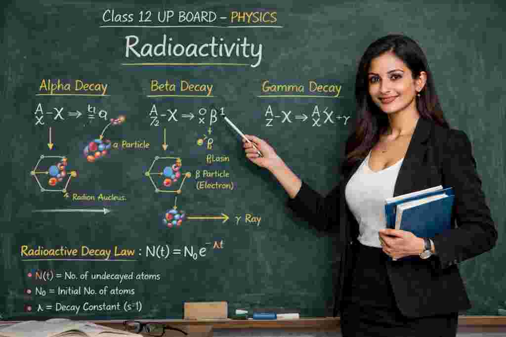 Class 12 Physics के Modern Physics भाग में Radioactivity (रेडियोधर्मिता) अत्यंत महत्वपूर्ण अध्याय है। कुछ तत्व ऐसे होते हैं जिनके नाभिक अस्थिर होते हैं और वे स्वतः ही विकिरण (radiation) उत्सर्जित करते हैं। इस प्रक्रिया को रेडियोधर्मिता कहते हैं।