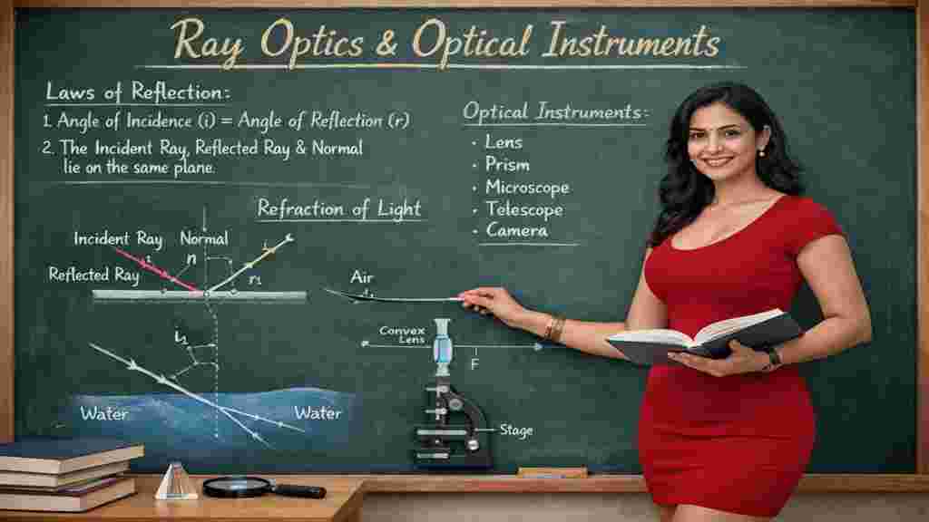 Rays Optics & Optical Instruments” आज हम Class 12 Physics के सबसे important, conceptual और scoring chapter — “Ray Optics & Optical Instruments” को ultra-detail में समझने वाले हैं।