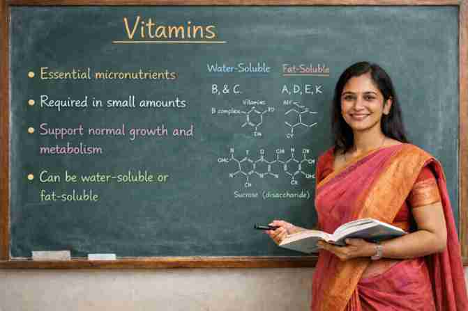 Vitamins जैव-अणुओं (Biomolecules) का एक महत्वपूर्ण वर्ग हैं, जो हमारे शरीर की सामान्य वृद्धि, विकास, रोग प्रतिरोधक क्षमता और चयापचय (Metabolism) के लिए आवश्यक होते हैं।