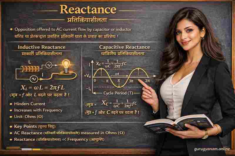 भौतिकी (Physics) में जब हम Alternating Current (AC) की बात करते हैं, तो केवल प्रतिरोध (Resistance) ही धारा को नहीं रोकता, बल्कि एक और महत्वपूर्ण गुण होता है जिसे Reactance (रिएक्टेंस) कहा जाता है।